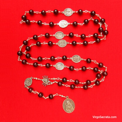 All medals and the rosary center are handmade, cast in sterling silver using the ancient lost wax method, and antiqued to recapture the original appearance of the designs.